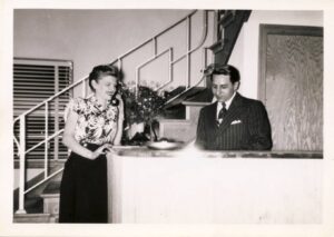 As her sister-in-law, Winnie Fickes (age 90), recently explained, Charlotte was a dress maker after high school who worked in New York City before her marriage. Winnie remembers Charlotte hand sewing crystal beads, one-by-one on an elegant gown and working as a seamstress in a room in back of the Mundis real estate office in downtown York City. The lip stick red kitchen cabinets in their residence was a pop of mid-century design color that she’ll never forget.