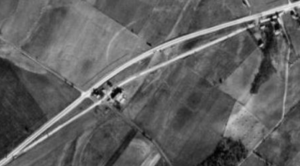 When the state planned to improve and widen U.S. 30 through Paradise Township, they ran into a problem at the farm just east of what is now called Lake Road. The Lincoln Highway was squeezed through a narrow gap between the house and the barn. This location was also a former toll gate location along the turnpike. Thankfully, the owner convinced the state to relocate U.S. 30 north of their buildings and both historic home and barn were preserved. This 1938 areal photograph clearly shows how the original alignment of the Lincoln Highway was preserved and U.S. 30 was curved north as you head west of the Village of Farmers. There’s also an early turnpike stone mile marker along the cluster of buildings at the eastern end of this original stretch of the turnpike if you take the time to slow down and look for it.