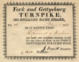 The listing of 1928 markers simply describes post 97 as a double arrow concrete post installed on the south side of the Lincoln Highway at “Martin Myer’s mail box.” Thankfully, further research not only revealed the location of this marker, but also a fully preserved original alignment of the Lincoln Highway in Paradise Township, York County, Pennsylvania When the original Lincoln Highway route was established for motorist across south central Pennsylvania in 1913 it followed a network of private toll roads. This section was part of the York and Gettysburg Turnpike that was established in 1819 to provide a reliable transportation route for horses and wagons traveling between the Adams County and York County seats. Both Union and Confederate forces traveled along this historic road during the Civil War. It wasn’t until around 1920 when the Pennsylvania Department of Transportation purchased these toll roads and began improvements fit for automobile travel that the road was first called PA Route 1 and eventually U.S. 30 as we know it today.