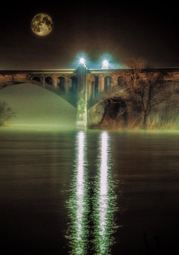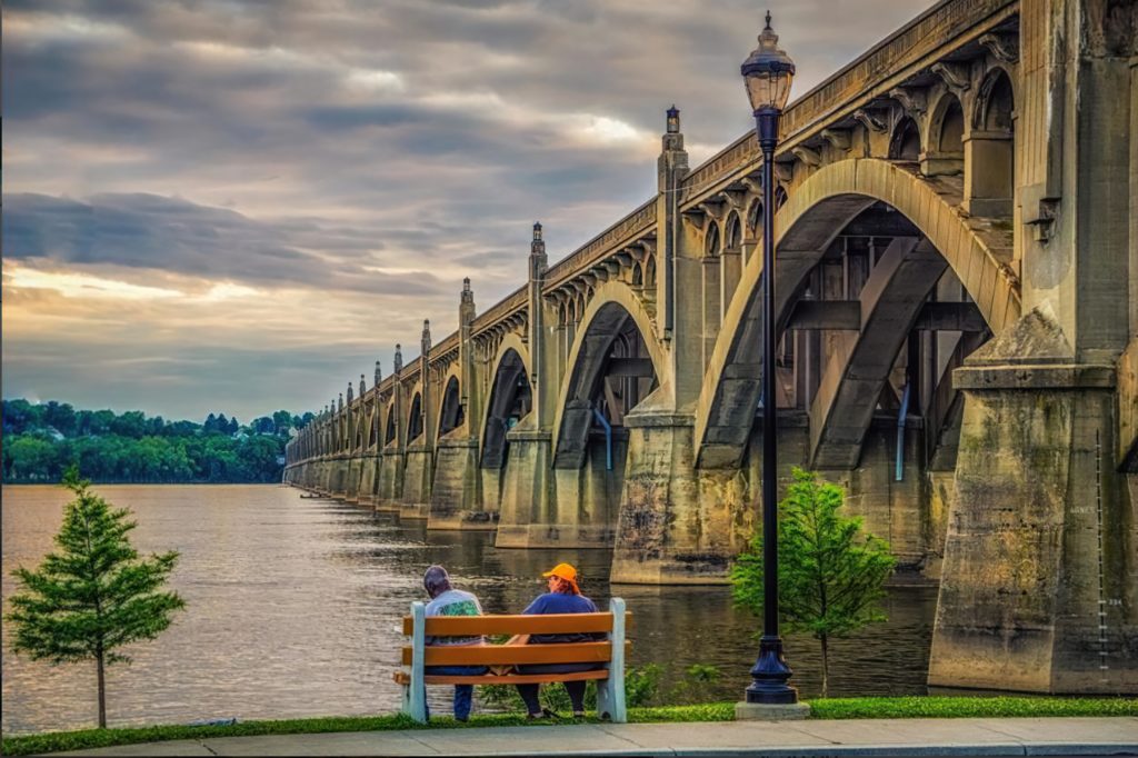 York-Lancaster Inter-County Bridge at dusk with Original Lights